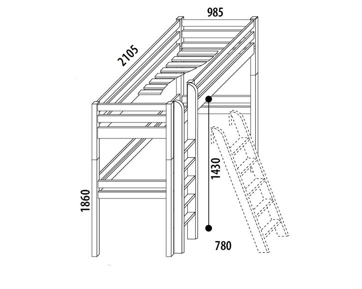 Součástí ceny postele je žebřík, který může být libovolně umístněn na pravé nebo levé straně postele. Navíc nabízí možnost volby, jestli má být rovný, šikmý nebo s otvory. Dokoupením látkových doplňků jako např. stanu, tunelu, polštářků či chráničů vytvoříte svému dítěti jedinečnou postel, která mu poskytne prostor pro spaní i dovádění.