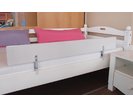 Kvalitní univerzální zábrana k dětským postelím - použití na všechny tloušťky bočnic. Provedení - masiv moření na bílo.