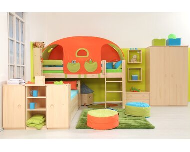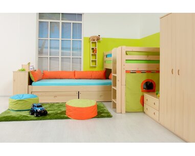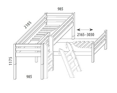 Zvýšená postel pro 2 děti - elko DOMINO D937 je vyrobená z masivního smrku o síle 2,5 ...