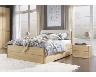 Postel s úložným prostorem a roštem Atlantik, 90x200, masiv dub přírodní/dýha - krémová ekokůže