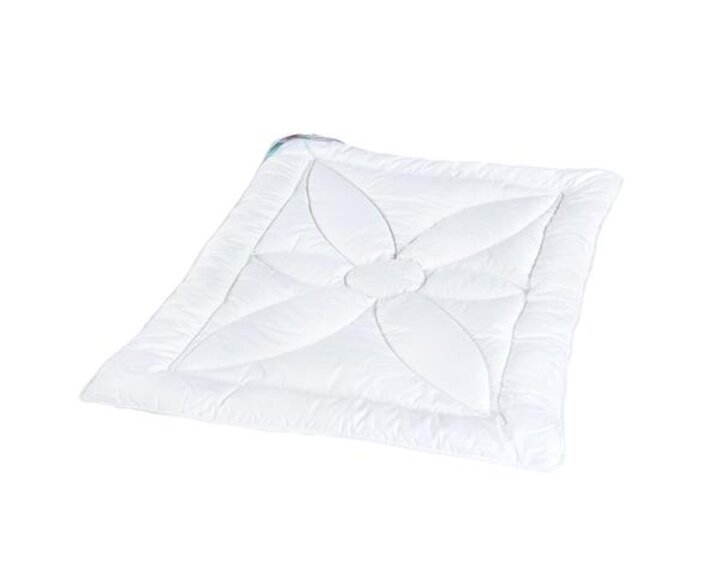 Kazetová péřová přikrývka s rovnoměrným rozložením peří pro celoroční použití. Povrch: 100 % přírodní nebělená bavlna. Rozměr 140 x 200 cm. Hmotnost náplně 1.300 g. Pratelná