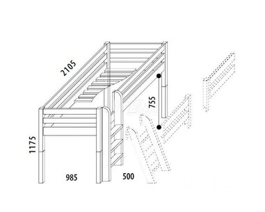 Zvýšené jednolůžko DOMINO - postel se skluzavkou D905SB - TZ, masiv smrk