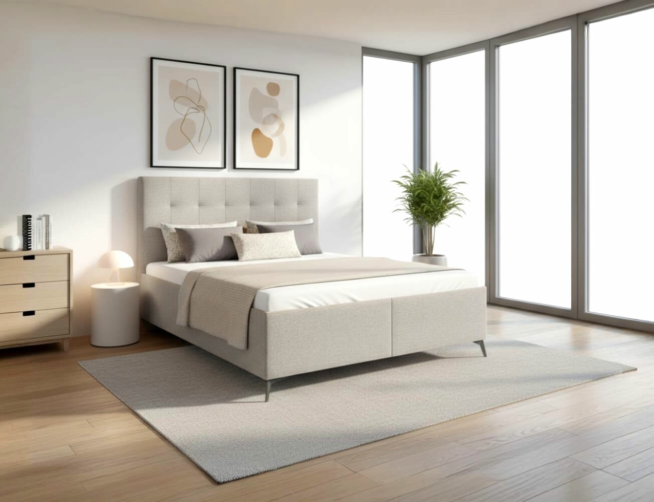 „Čalouněná postel Venus DT působí na první pohled moderně a elegantně díky svému minimalistickému designu a decentnímu křížovému prošití čela. Tento detail dodává posteli originální plastický vzhled, aniž by narušil její čisté linie. Celkové čalounění je precizně zpracované, pevné a odolné, což je znát už při prvním doteku.“