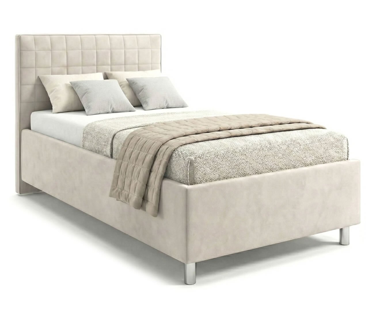 Po designové stránce mě zaujalo především vysoké prošívané hlavové čelo, které poskytuje pohodlnou oporu zad a zároveň dodává posteli elegantní a reprezentativní vzhled. Kvalitní čalounění je příjemné na dotek, pevně napnuté a precizně zpracované i v detailech. Decentní nožky navíc posteli dodávají moderní lehkost a usnadňují úklid pod lůžkem.