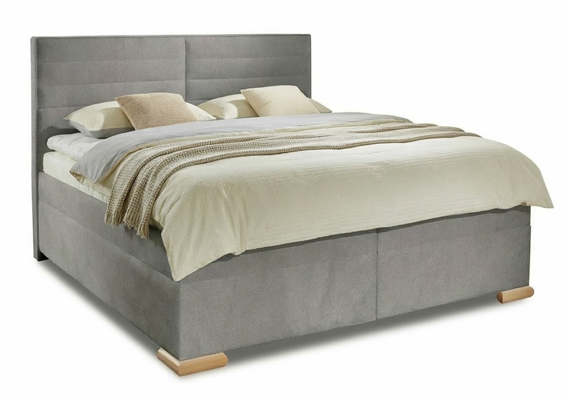 Velká ložná plocha 180x200 cm, nosnost rámu 2x140 kg, volitelné potahy a nožičky, hluboký úložný prostor.