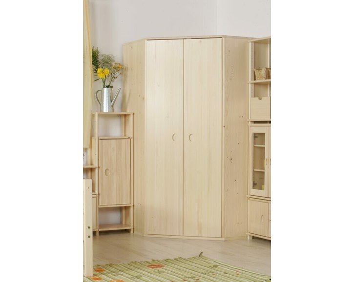 Skříň rohová pološatní s dveřmi D508-Domino je vyrobena ze smrkového masivu výběrové kvality a patří do nábytkového systému Domino.