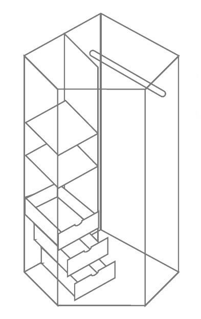 Skříň rohová pološatní s dveřmi D508-Domino je vyrobena ze smrkového masivu výběrové kvality a patří do nábytkového systému Domino.