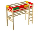 Horní lůžko je opatřeno zábranou po celém obvodu. Pro větší pohodlí je vhodné zábrany opatřit látkovými chrániči, které se vyrábějí v krásných a veselých barvách. Horní spaní nabízí pohodlný a bezpečný spánek a pod postelí se nachází prostor, který můžete využít k postavení psacího stolu či jiného nábytku.