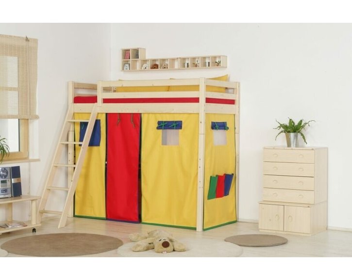 Součástí ceny postele je žebřík, který může být libovolně umístněn na pravé nebo levé straně postele. Navíc nabízí možnost volby, jestli má být rovný nebo šikmý. Dokoupením látkových doplňků jako např. stanu, tunelu, polštářků či chráničů vytvoříte svému dítěti jedinečnou postel, která mu poskytne prostor pro spaní i dovádění.