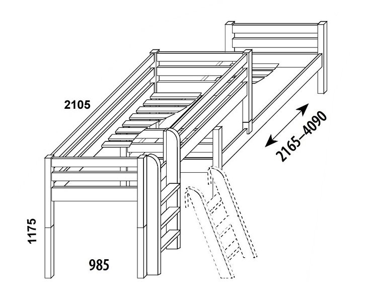 K výstupu na vyvýšenou dětskou postel slouží pohodlný dřevěný žebřík, který může být libovolně umístněn na pravé nebo levé straně postele. Navíc si můžete vybrat, jestli má být rovný nebo šikmý. Bezpečnost výstupu je u zvýšených postelí a paland docílena speciální protiskluzovou úpravou.
