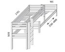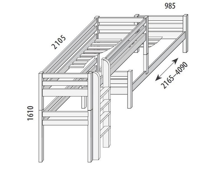 K výstupu na tuto patrovou postel pro 2 děti slouží pohodlný dřevěný žebřík, který může být libovolně umístněn na pravé nebo levé straně postele. Navíc si můžete vybrat, jestli má být rovný, šikmý nebo s otvory. Bezpečnost výstupu je u zvýšených postelí a paland docílena speciální protiskluzovou úpravou.