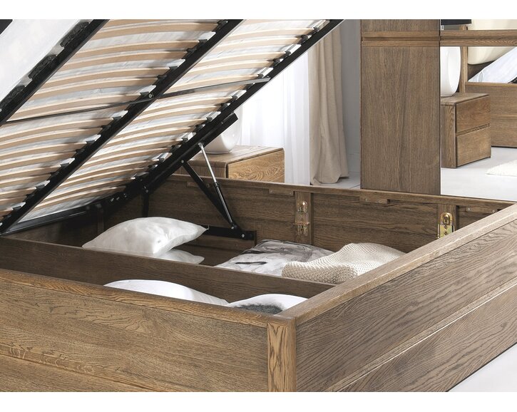 Vysoká postel Atlantik je standardně vyráběná v základním provedení 200x200 cm a lze ji objednat také v jiném rozměru či provedení čalounění. Součástí ceny postele je výklopný lamelový rošt, které zajistí snadný přístup do úložného prostoru. Pokud hledáte vysokou praktickou postel extra pevné konstrukce s dlouhou životností – určitě by vás mohla postel Atlantik z masivního dubu zaujmout.