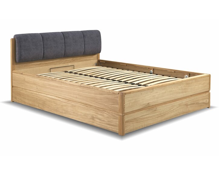 Vysoká postel Atlantik je standardně vyráběná v provedení 200x200 cm a lze ji objednat také v jiném rozměru či provedení čalounění. Součástí ceny postele je výklopný lamelový rošt, které zajistí snadný přístup do úložného prostoru. Pokud hledáte vysokou praktickou postel extra pevné konstrukce s dlouhou životností – určitě by vás mohla postel Atlantik z masivního dubu zaujmout.