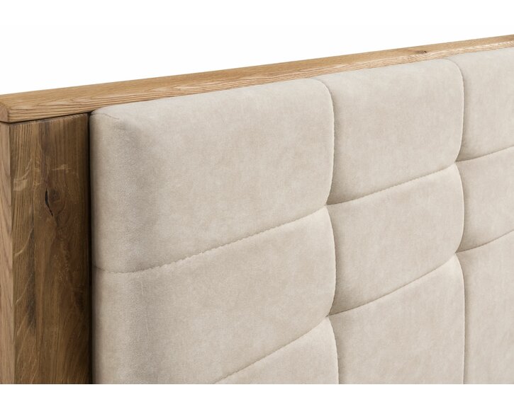 Korpus manželské postele Deviner je vyroben z 1,8 cm dýhované desky opatřené přírodní dubovou dýhou. Obvodový rám je vyroben z kvalitního dubového dřeva v průběžném provedení ( nikoli z lepených parket ). Horní část rámu je zesílená na 7 cm. Profil nosných nohou je 4x7 cm.
