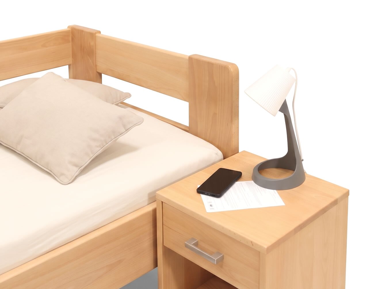 • Pečlivé opracování povrchu: Všechny díly postele jsou precizně zabroušené a konstrukce je upravena polomatným lakem.
