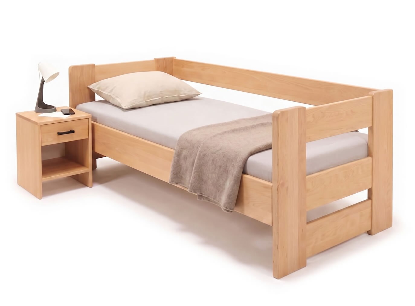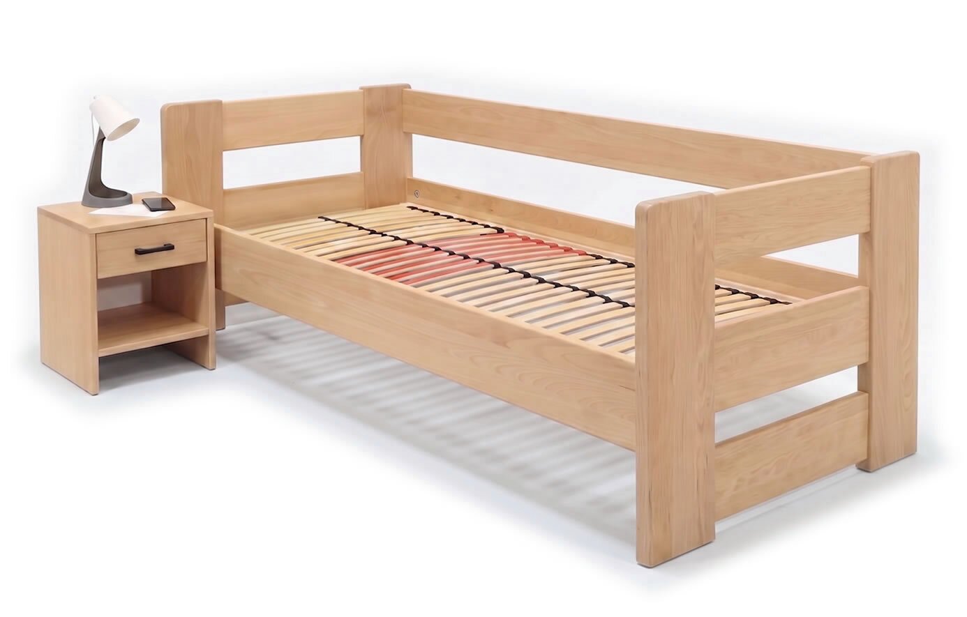 Zvýšená postel jednolůžko MIVA s čely, 120x200, masiv buk