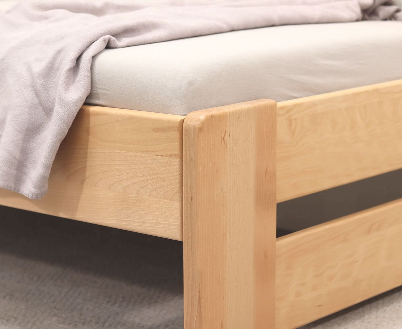 Na posteli MIVA oceňuji zejména kombinaci průběžného bukového masivu (žádný cink/parketové provedení) a konstrukce bez zbytečných komplikací. Právě absence úložného prostoru je v tomto případě výhodou – postel působí vzdušněji, lehčeji a konstrukčně velmi čistě.
