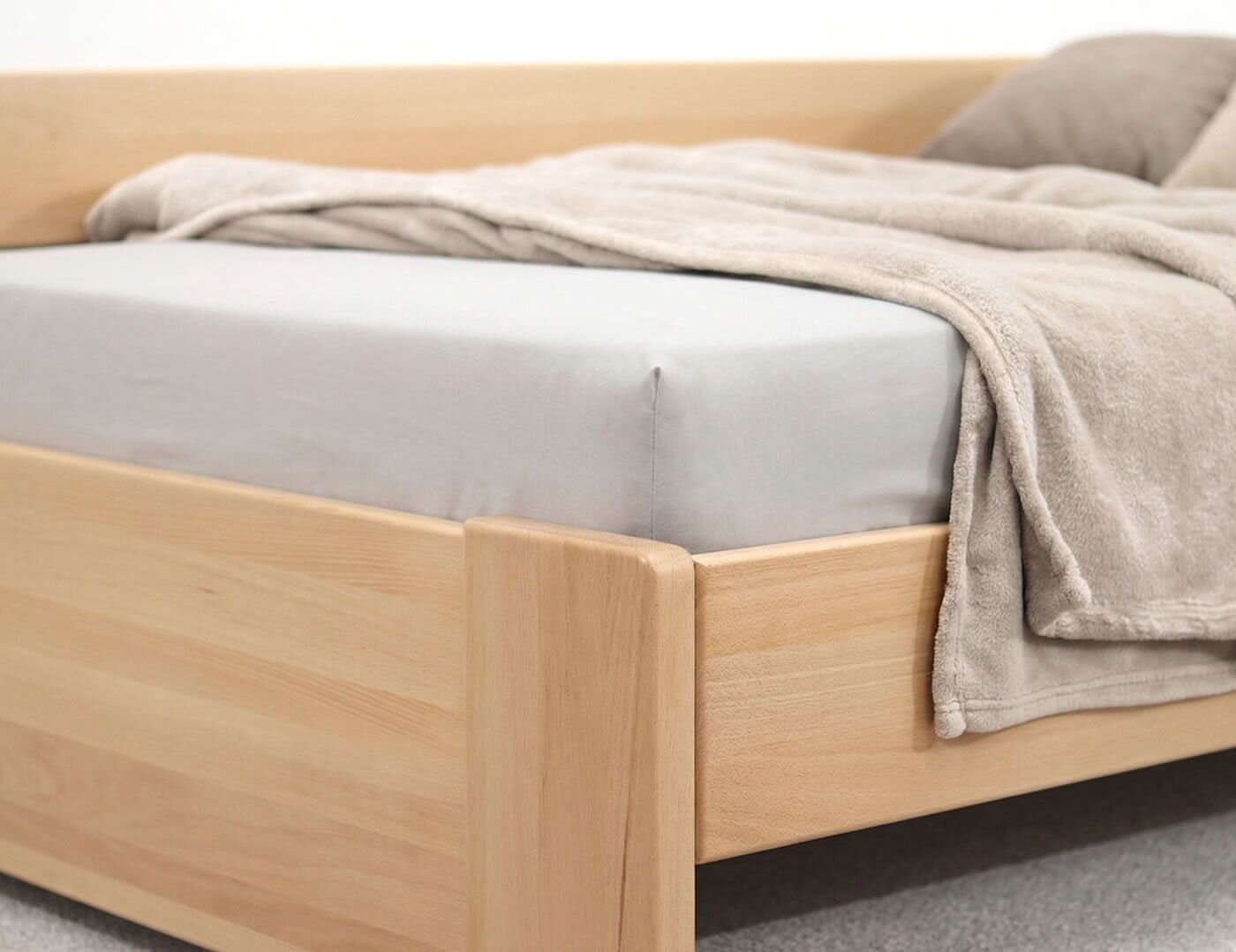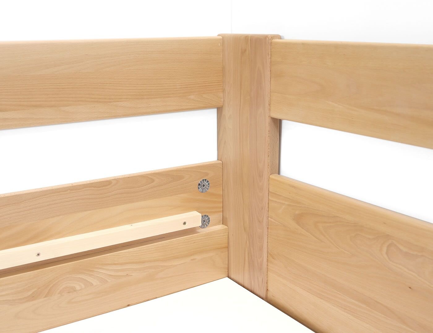 Povrchová úprava ekologickým lakem je u MIVY provedena velmi precizně, dřevo je hladké a příjemné na dotek. Rohové spojení pomocí dvojitého hákového kování je natolik pevné, že se postel ani po letech nepohne. Pokud bych měl něco vytknout, byla by to absence výškově stavitelného kování pro rošty, ale chápu, že pro zachování takto příznivé ceny a tuhosti konstrukce je stávající řešení optimální.