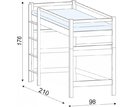 Postel je opatřena zábranou proti pádu zajišťující bezpečnost vaších dětí. K výstupu na postel slouží dřevěný žebřík. Díky nášlapům o délce 9 cm je tak výstup velmi pohodlný. Žebřík může být umístěn jak na levé tak na pravé straně postele, zákazník si stranu zvolí sám při montáži. Prostor od země po vrchni bočnicí je 136 cm. Spodní prostor pod postelí lze využít pro hraní nebo zde můžete umístit psací stůl či jiný druh nábytku, který je možno dokoupit - viz nabídka příslušenství.
