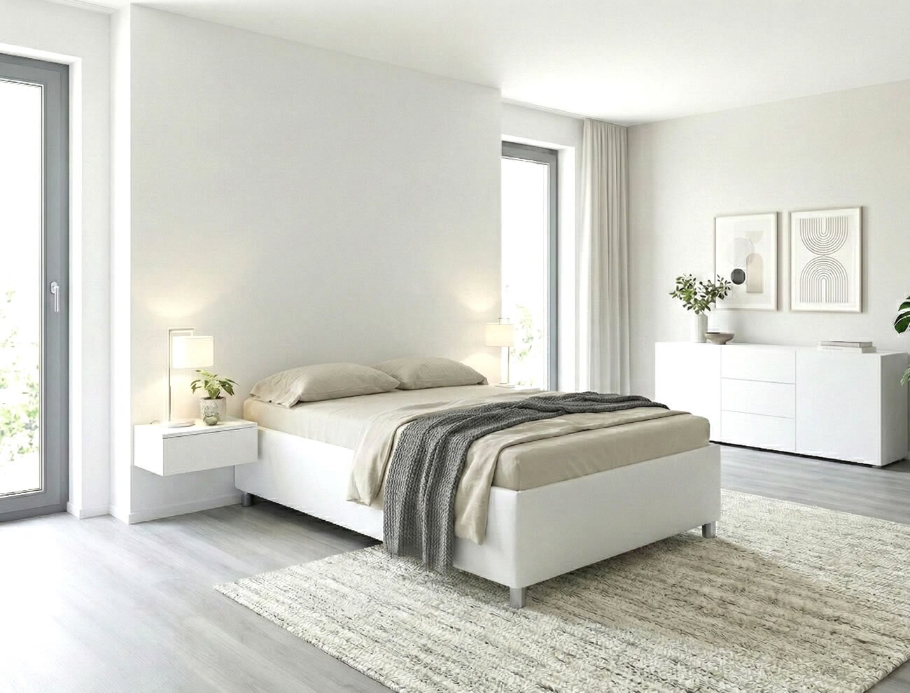 Korpus postele je vyroben z odolného lamina bílé barvy o tloušťce 1,8 cm. Výška rámu činí 46 cm, přičemž hloubka zapuštění matrace je 6,5 cm – ideální kombinace pro pohodlné vstávání. Úložný prostor má využitelnou hloubku přibližně 23 cm s maximální nosnosti 20 kg. Dno je řešeno bílou MDF deskou, která je vybavena odvětrávacími otvory pro lepší cirkulaci vzduchu a hygienu uložených textilií.