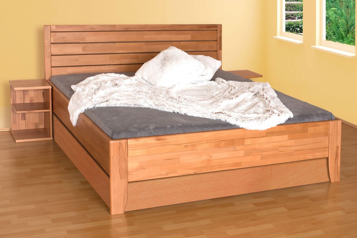 Manželská postel s úložným prostorem Erin 1 představuje moderní postel v naší nabídce a osloví i náročnější zákazníky, kteří hledají vysokou kvalitu bez kompromisů. Rám postele je vyrobený z masivního jádrového buku v parketovém provedení cink. Dřevěná postel Erin představuje kombinaci luxusního designu, špičkové kvality a precizního zpracování.