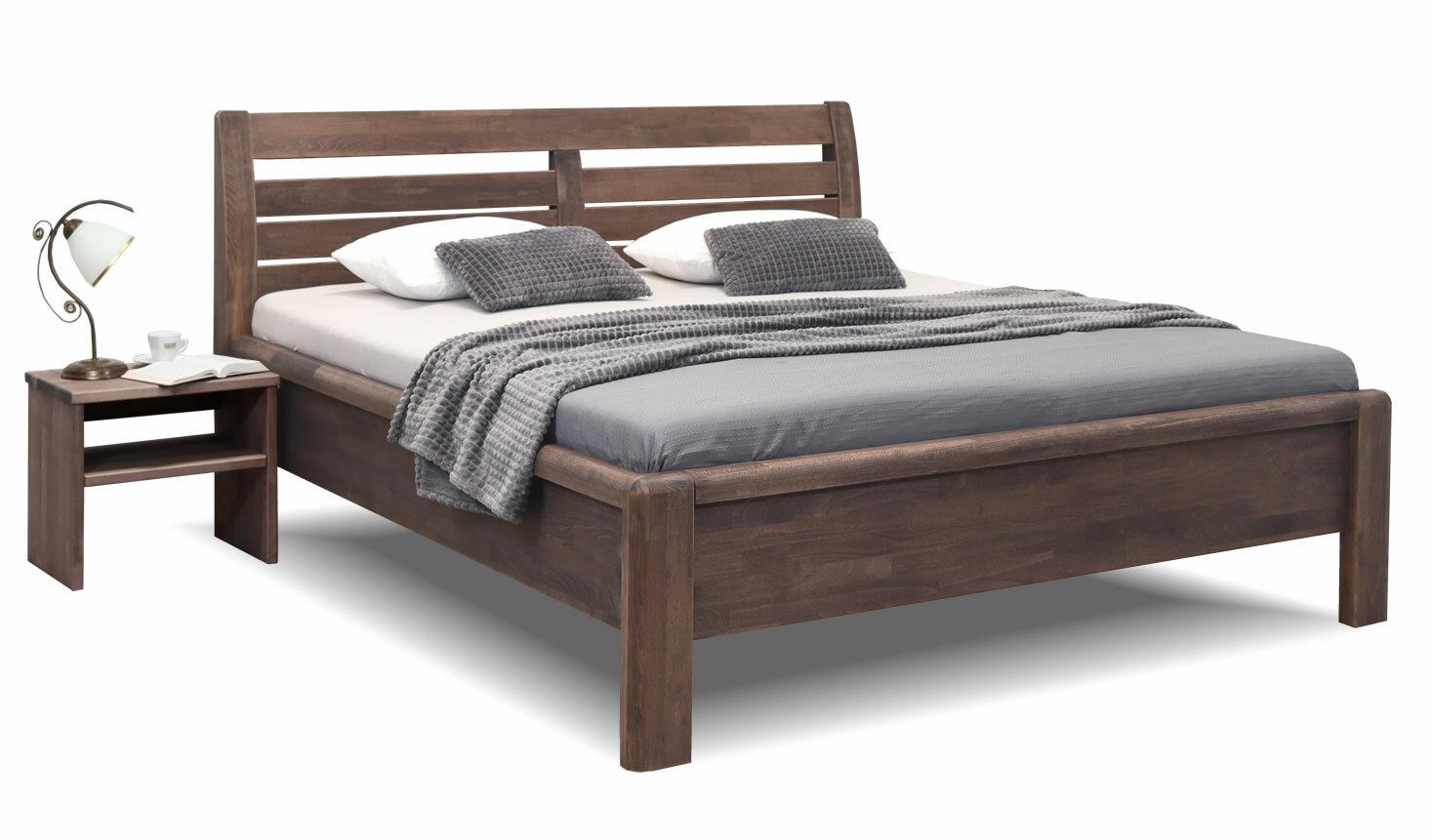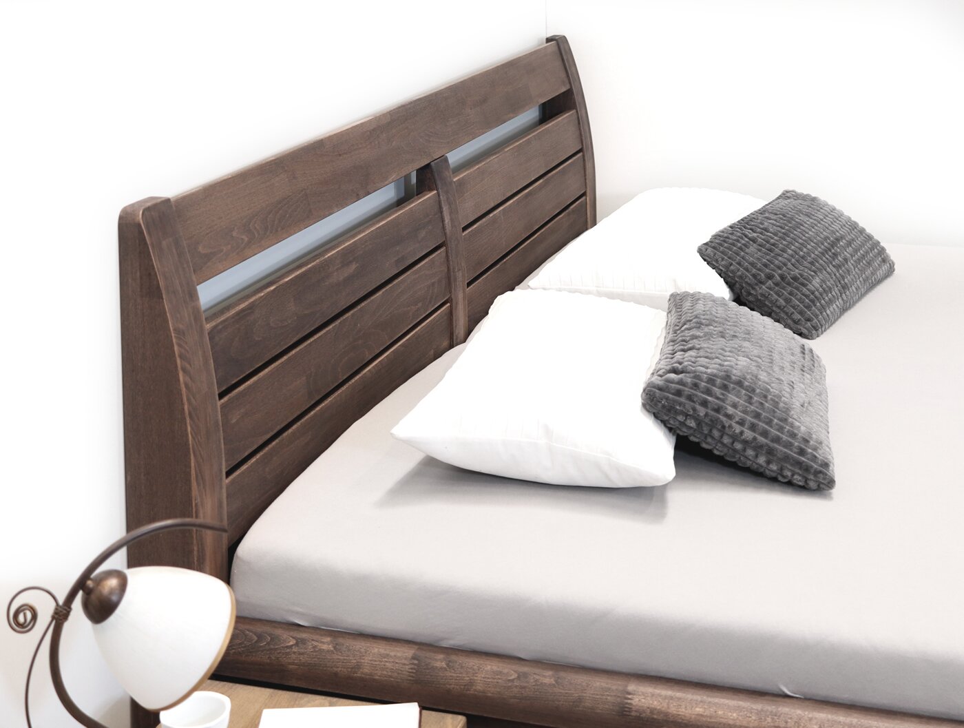 Celomasivní zaoblená dřevěná postel z 3,8 cm bukového masivu na čelech a 2,8 cm masivu na bočnicích. Nosnost 400 kg. Povrchová úprava voskem nebo lakem.