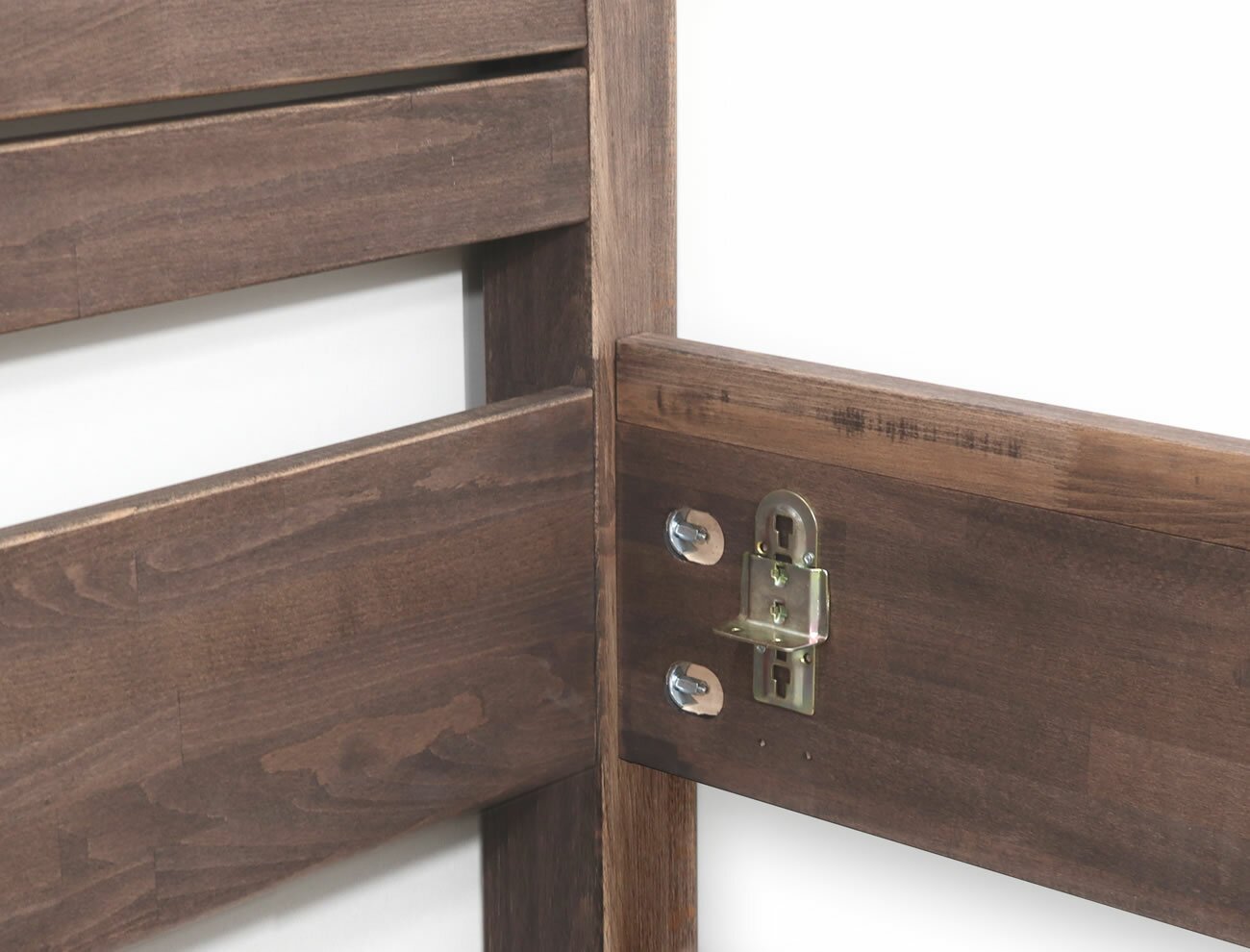 Rohové spojení je tvořeno hlavními spojovacími šrouby a dřevěnými kolíky. K podepření roštů slouží výškově stavitelné kování, které je možné usadit do jedné ze tří poloh.Díky tomu lze výškově nastavovat polohu roštu a tedy i výslednou ložnou plochu celé postele.