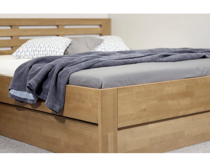 Manželská postel s úložným prostorem MICHALIS představuje spojení oblíbeného designu a nejnovějších trendů. Vyrábí se v moderní truhlárně na Jižní Moravě na plně automatizovaných strojích. Velkou výhodou této postele je variabilita výškového nastavení roštů a možnost výběru povrchové úpravy olejem nebo lakem. Dvoulůžko z masivu Michalis se vyrábí v rozměrech ložné plochy 160x200 a 180x200cm.