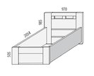 Celkový vzhled této postele jednolůžka se vyznačuje jednoduchým a moderním designem. Úložný prostor je stejně jako rám postele celodřevěný. Čelo u hlavy tvoří tři rozdělené úzké průhledy, díky nímž vypadá vypadá postel velmi zajímavě. Všechny hrany jsou zabroušeny pod úhlem 45° , nikde nevystupuje žádná ostrá část. Povrch dřeva je kvalitně nalakován vodouředitelným atestovaným lakem, takže je příjemně hladký.