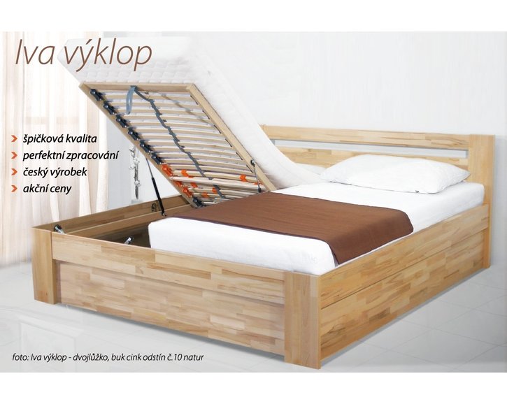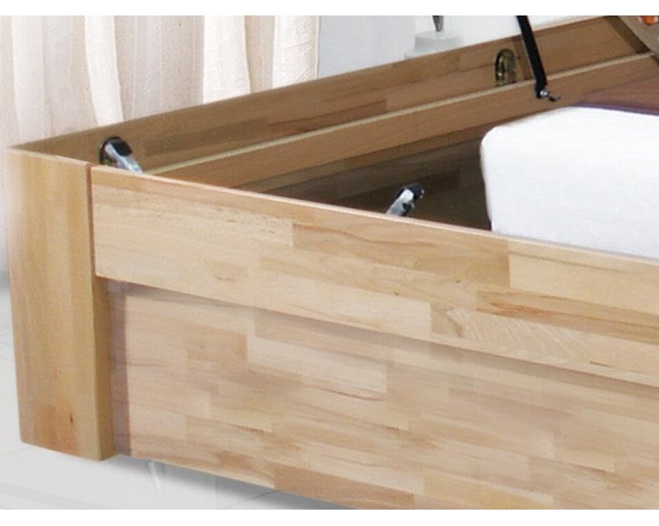 Postel IVA je dodávána včetně úložných prostorů, které mohou být přístupné buď z čela (od nohou postele) nebo z boku, záleží na zvoleném výklopném roštu. Úložný prostor je vyroben z masivu.