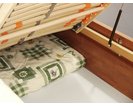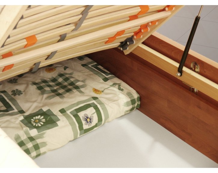 Postel má zabudované úložné prostory, které poskytnou místo pro lůžkoviny či jiné věci. Úložné prostory mohou být přístupné buď z čela (od nohou postele) nebo z boku - záleží na zvoleném roštu.