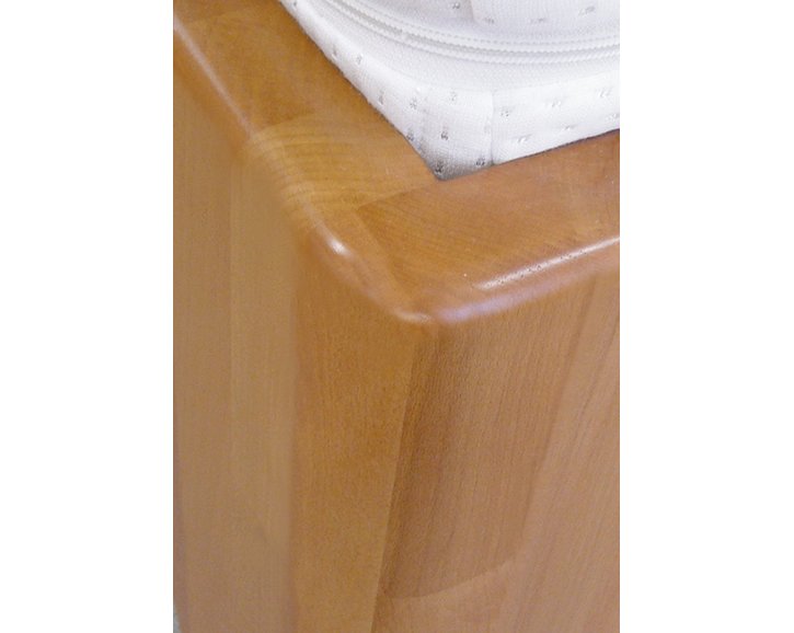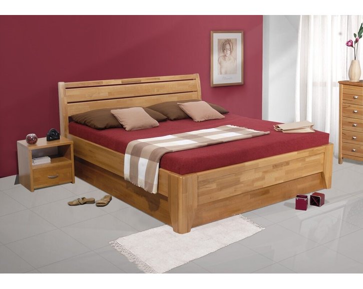 Tato postel z masivu vyniká svým propracovaným čelem a masivními nohami. U této postele může volit výšku k horní hraně bočnice buď 45 nebo 50 cm.