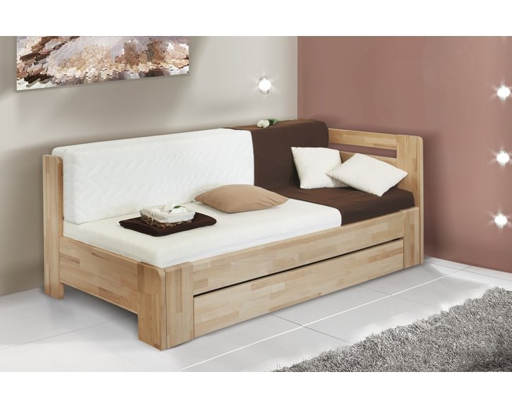 Rozkládací postel s úložným prostorem DUO LUX levá, 90x200, buk