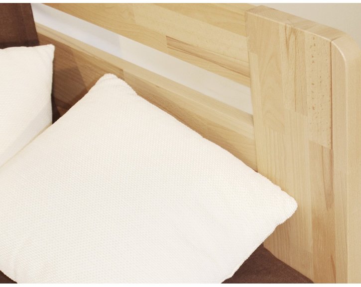 Dřevěná rozkládací postel DUO LUX levá je vyrobená z masivního buku se strukturou dřeva moderního parketového designu zvaného cink nebo buku průběžného. Povrchová úprava je provedena nezávadným ekologickým lakem a nabízí možnost několika odstínů moření. Síla použitého materiálu je 3 cm (čelo) a 2,6 cm (bočnice).