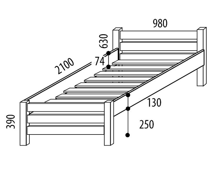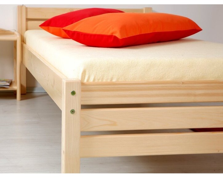 Postel je vyrobená z masivu smrku s povrchovu úpravou přírodního laku. Velkou výhodou této postele je zvýšená lehací plocha, která zajišťuje snadné vstávání z postele.