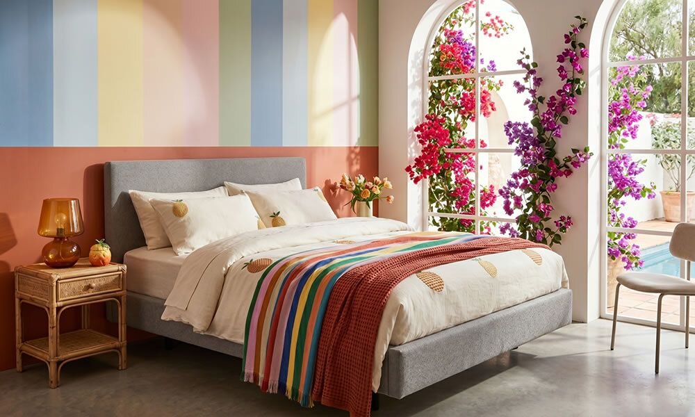 Léto je obdobím optimismu, delších dnů a touhy po svěžesti, a právě tato atmosféra se v roce 2026 naplno promítne i do našich domovů. Po dlouhém období dominance velmi strohého a minimalistického designu se trendy vrací k odvaze, hravosti a hlubokému pocitu útulnosti. Ať už toužíte po energickém probuzení v záplavě barev, nebo po klidném útočišti připomínajícím luxusní dovolenou, tyto trendy vám ukážou cestu. Pojďte se s námi inspirovat a proměňte svou ložnici v místo, kde léto nikdy nekončí.