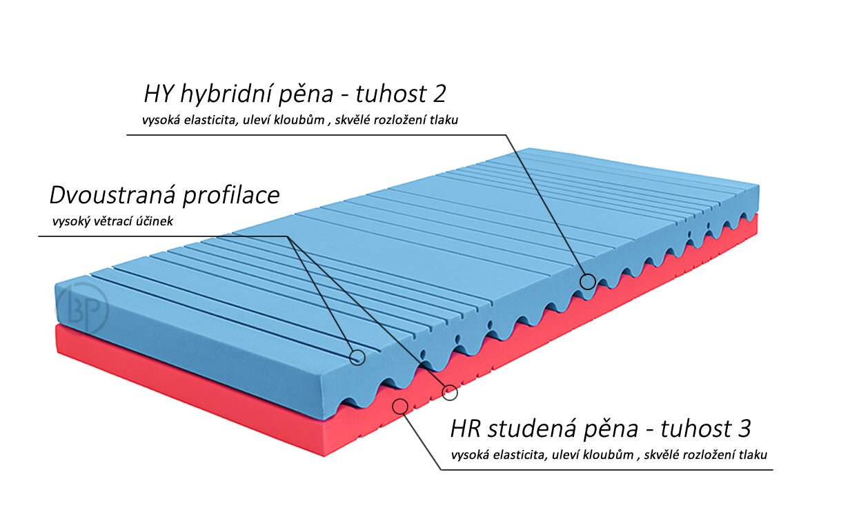 Hybridní pěna v sobě spojuje vlastnosti Studené (HR) pěny a Líné paměťové pěny.