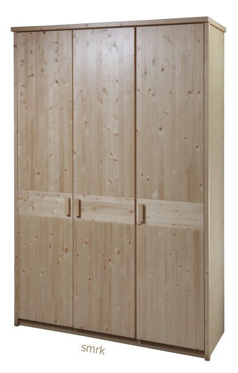 Šatní skříň ENNA 3dveřová je vyrobena ze smrkového masivu v kombinaci s laminem, povrchovou úpravou vodouředitelným atestovaným lakem. Nabízí velký úložný prostor s policemi a šatní tyčí.