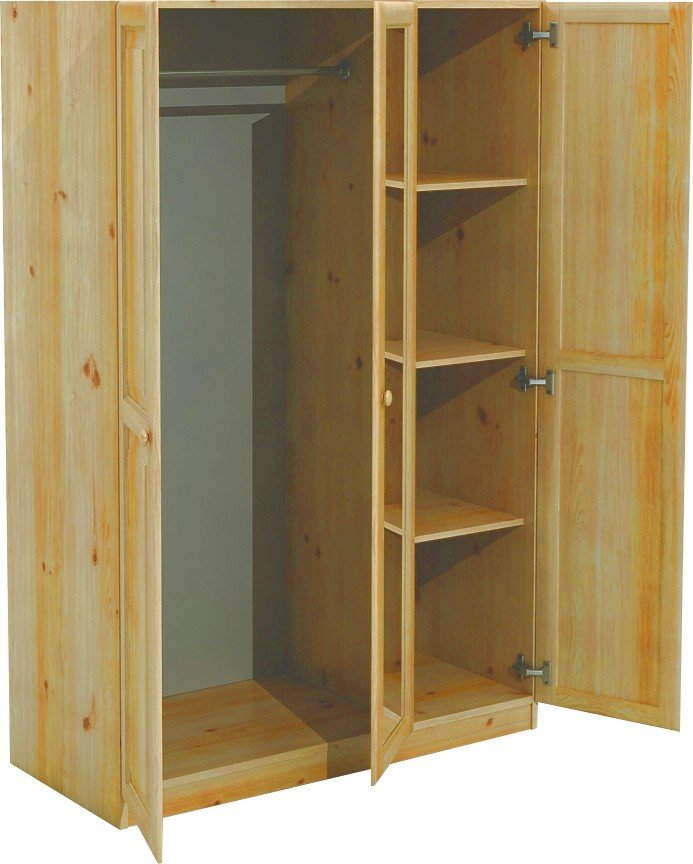 Šatní skříň BR040 je vyrobena z masivní borovice a patří do nábytkové řady nábytek z masivní borovice BR. Jednotlivé díly mají tloušťku 18mm.