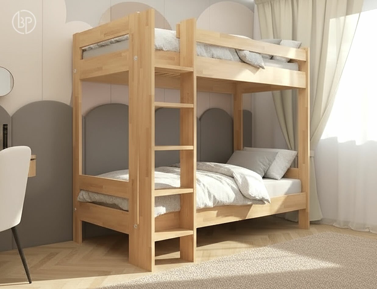Bukový masiv o tloušťce 2,5 cm zajišťuje vysokou stabilitu a pevnost. Čela postele tvoří robustní nohy s průřezem 2,5 x 11,5 cm. Horní lůžko bez problémů unese dospělého o hmotnosti až 100 kg, nosnost spodního lůžka je pak 120 kg. Spoje čel a bočnic jsou pevně zajištěny pomocí hlavních šroubů a dřevěných kolíků.