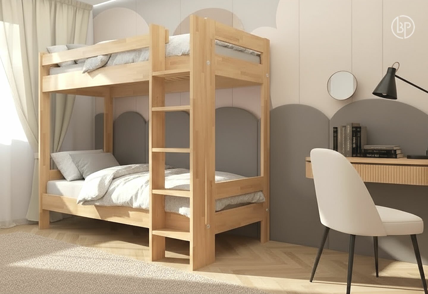 Poschoďová postel pro holku i kluka ELIN je vyrobená z kvalitního bukového masivu a nabízí prostor pro spaní 2 dětem.