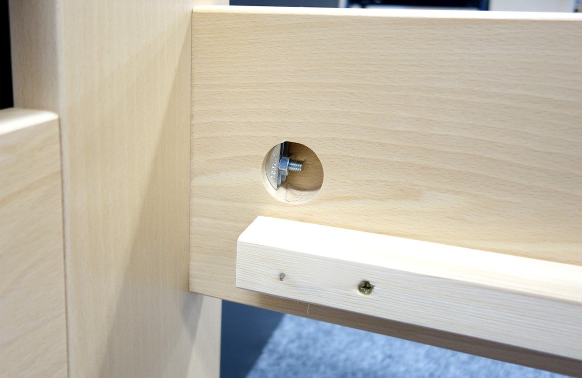Postel Justina 90x200 cm je po smontování velmi pevná a odolná. Vyrobena je z masivu o síle 3 cm (čela i bočnice). Pevnost a stabilitu zajišťuje hlavní spojovací šroub za pomocí bukových silných dřevěných kolíků. Rám postele má nosnost až do 160 kg! Výšku rámu postele (k horní hraně bočnice) můžete zvolit ve výšce 40 cm nebo 45 cm. Prostor pod postelí je 25/30 cm (podle zvolené výšky rámu postele).