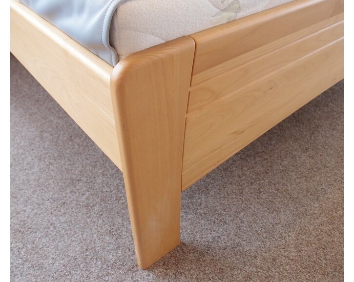 Postel s úložným prostorem EVITA 6 senior vyniká především svým moderním designem a vysoku kvalitou zpracování. Postel je vyrobená z tvrdého masivu buku v průběžném provedení o síle 3 cm. Povrchová úprava je provedena pomocí speciálního napouštěcího oleje nebo přírodního laku v barevném provedení tabáku. Zadní část hlavového čela a vnitřní neviditelné plochy jsou povrchově upraveny pouze jednou matnou vrstvou.