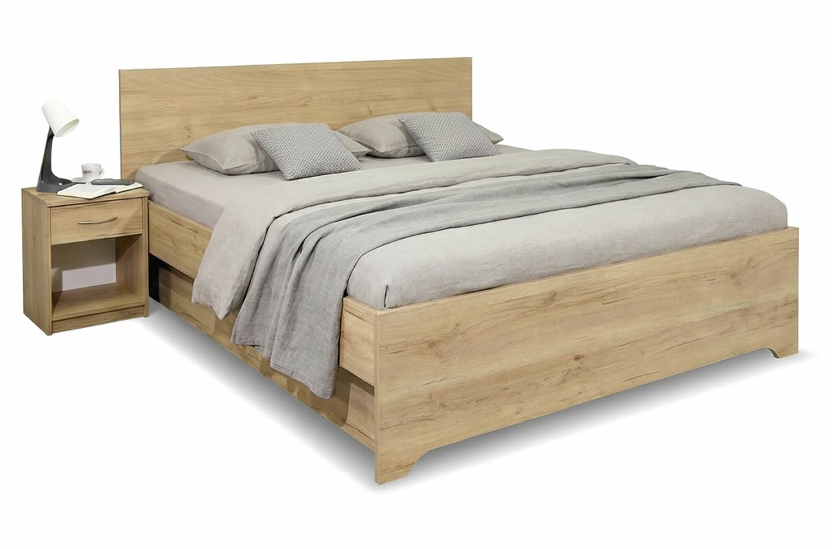 Postel HUGO je vyrobena z laminované dřevotřísky o síle 25 mm, 18 mm (úložný box) a nabízí možnost výběru z více barevných dezénů. Hrany jsou olepeny ABS hranou o síle 0,5 a 2 mm.
