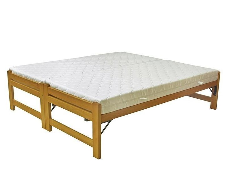 Rozkládací postel z masivu DUELO 90x200/180x200 představuje ideální řešení na chalupu nebo do pokoje pro hosty.