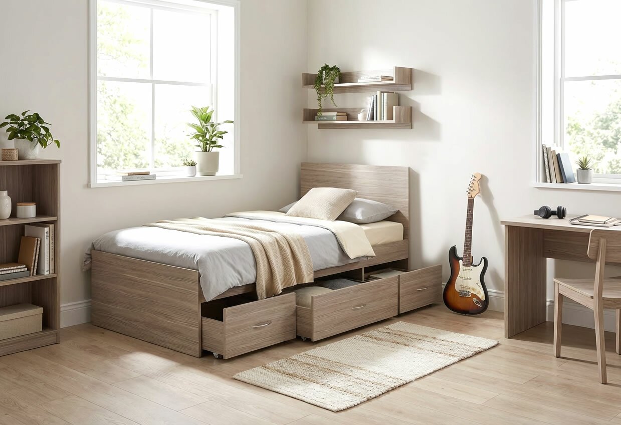 Úložný prostor můžete využít k uložení hraček, dětského oblečení či jiných věcí. Zásuvky pod postelí jsou vybaveny kolečky, které zajistí snadnou manipulaci.