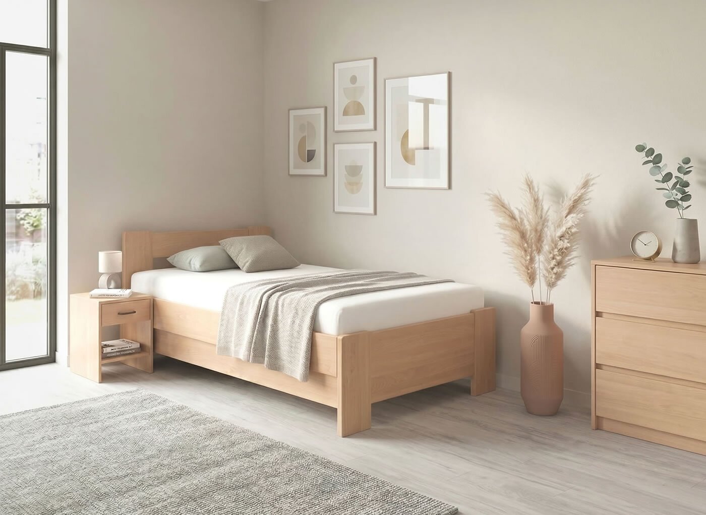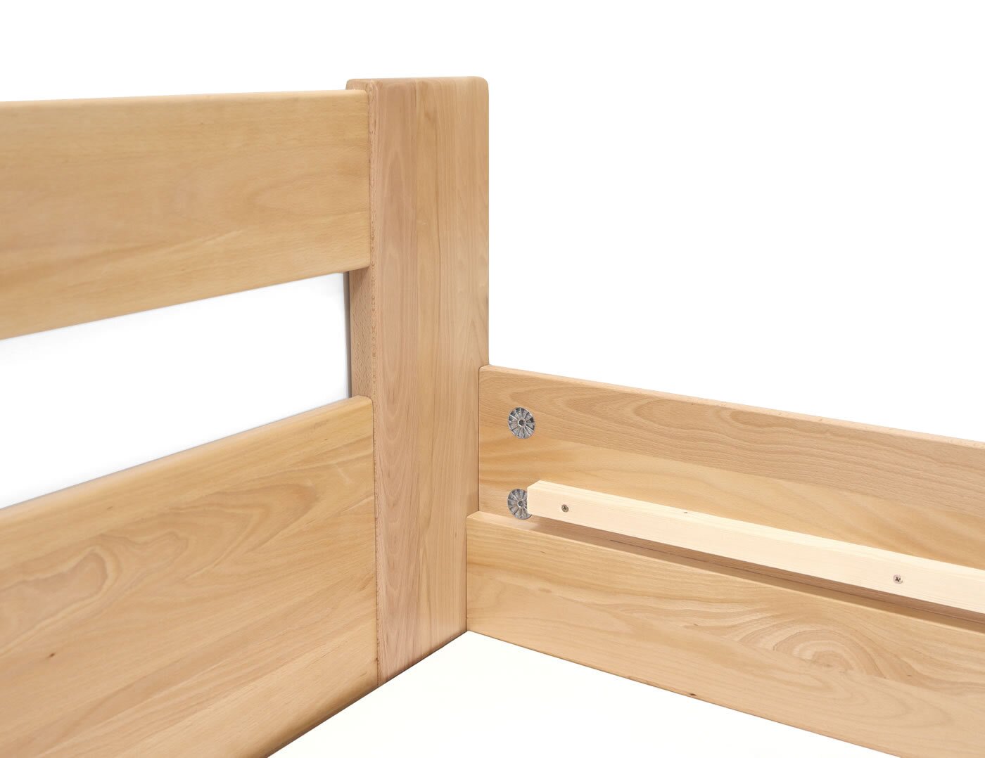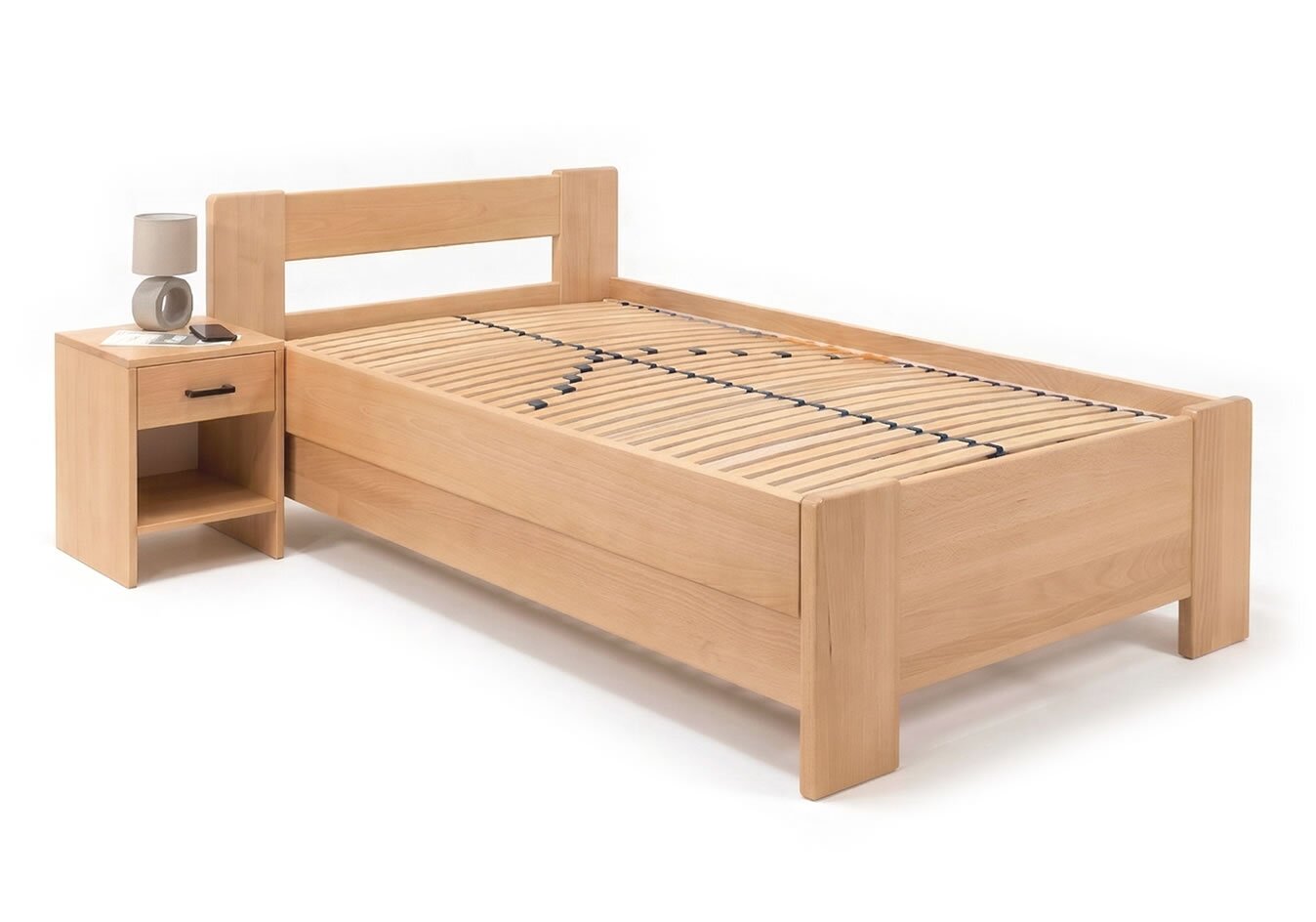 • Masivní konstrukce: Rám postele je konstruován z kvalitního průběžného buku o tloušťce 4 a 2,5 cm, což zaručuje stabilitu a dlouhou životnost bez vrzání.